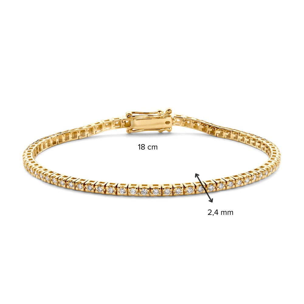 Geelgouden tennisarmband met briljant in chatonzetting.