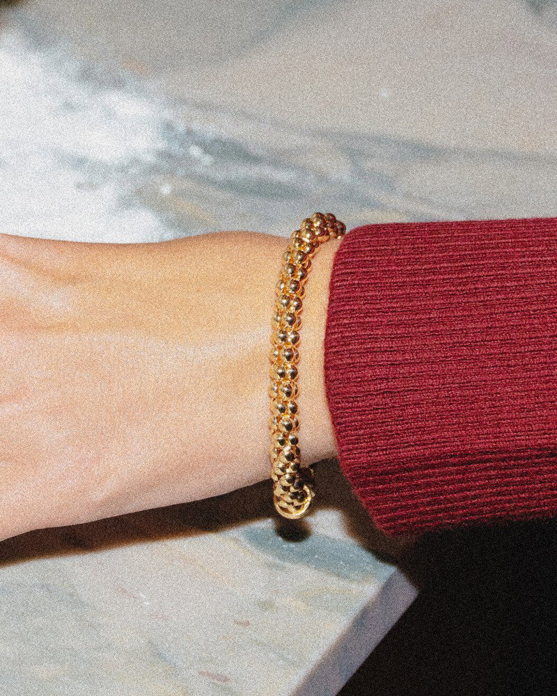 Stijlvolle gouden armband met klassiek design en luxe karabijnsluiting.