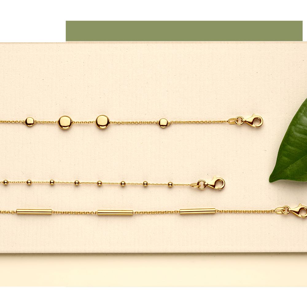Gouden armband met bolletjes.