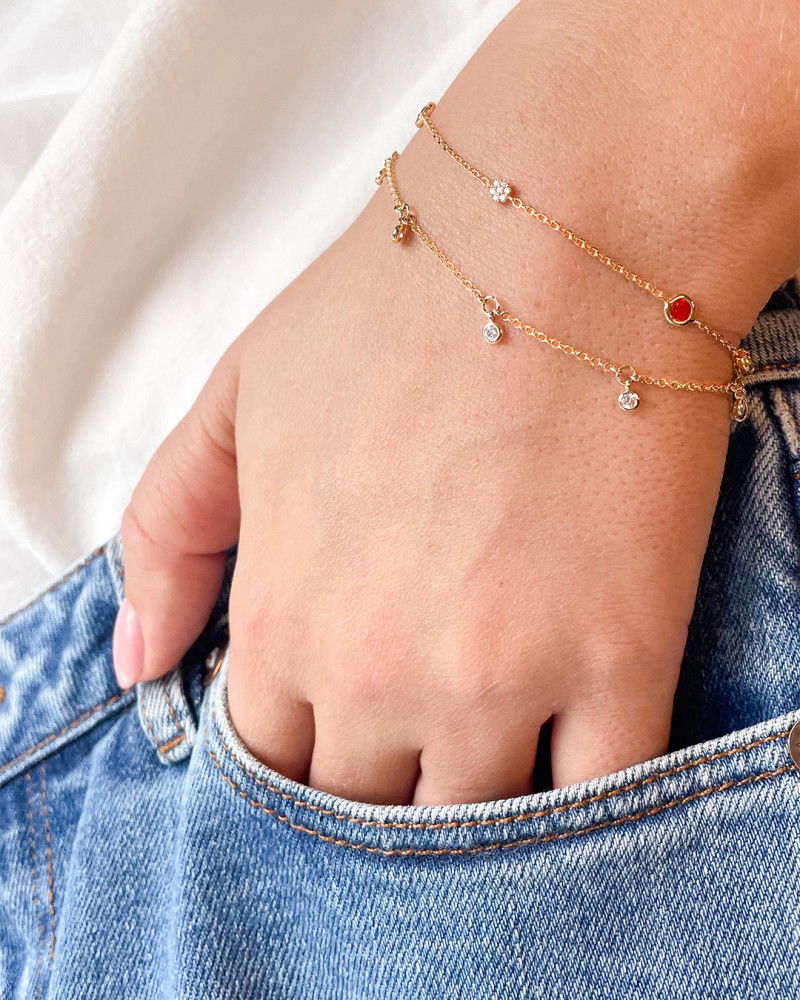 Prachtige geelgouden armband, gezet met fijne edelstenen (london blue topaas, peridot, vuuropaal) en diamant.