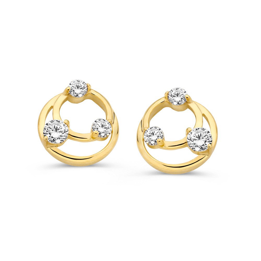Geelgouden armband met donkergroene zirkonia bolletjes.