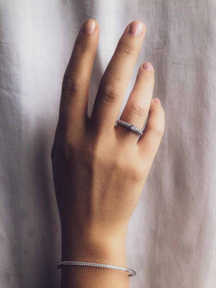 Gerhodineerd witgouden slavenarmband met briljant (31 stenen, 0.51 crt totaal)