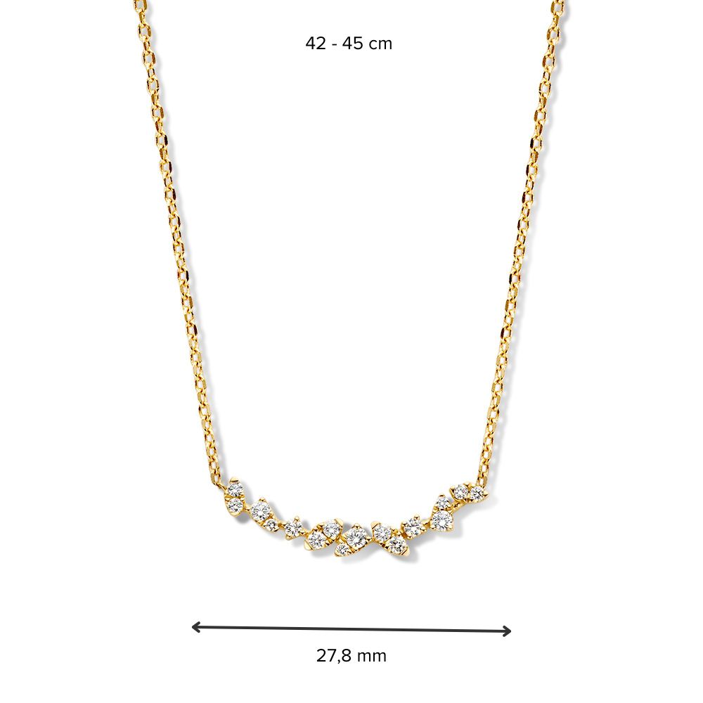 Geelgouden collier met diamanten tussenstuk. Het collier is in lengte verstelbaar.