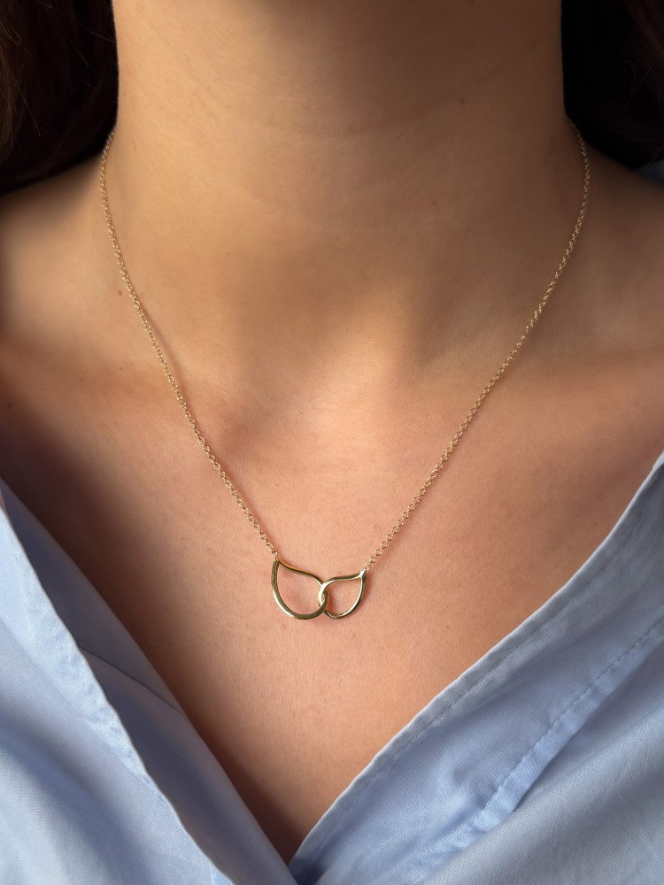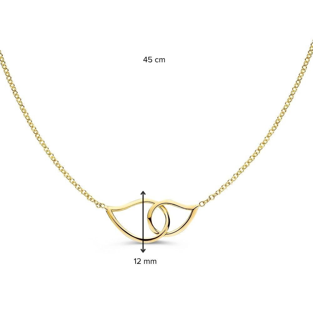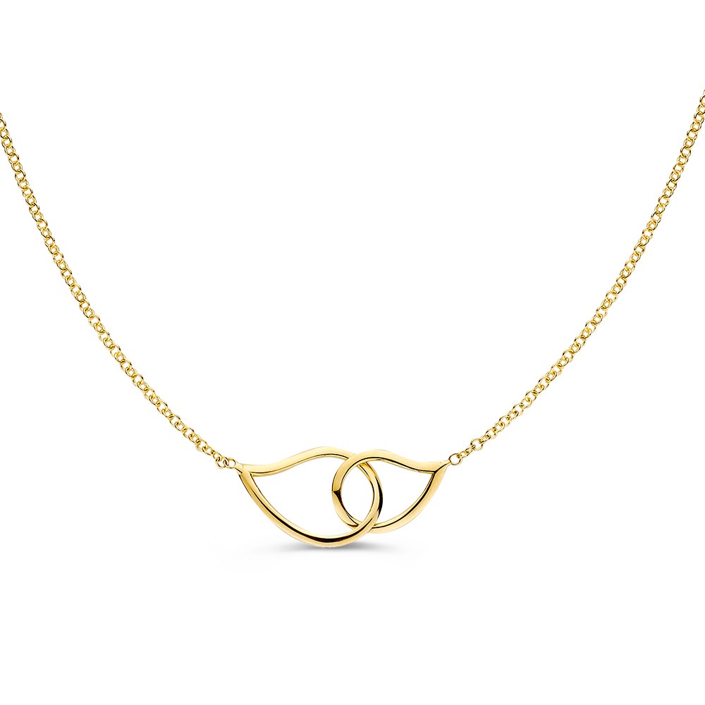 Dit 14 karaat geelgouden collier met 2 verbonden schakels in a-symetrische vorm geeft een speelse twist aan een klassiek design. De organische vormen zorgen voor een moderne, verfijnde uitstraling die subtiel opvalt en elke look net dat beetje extra geeft.