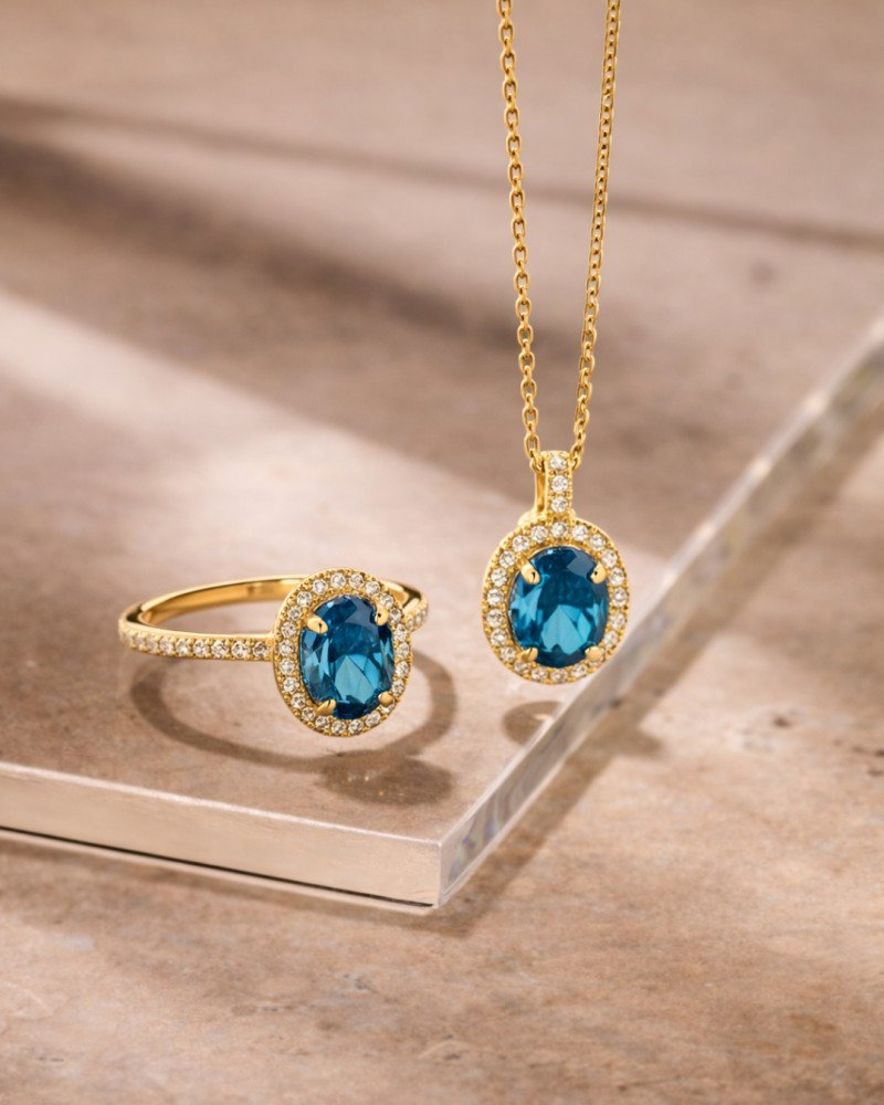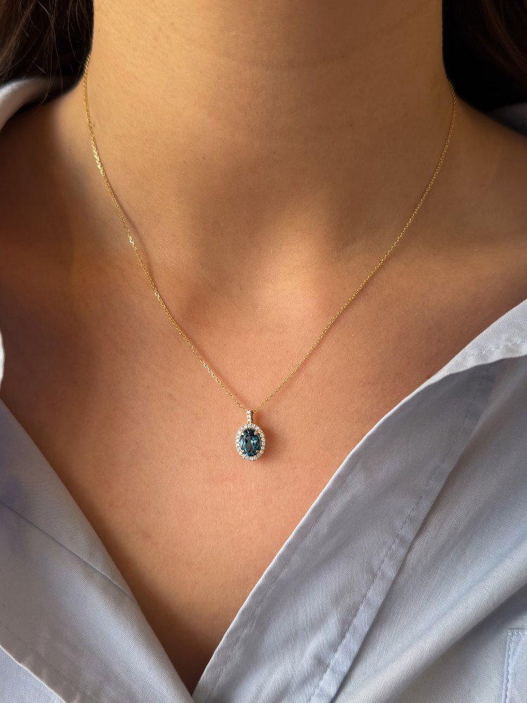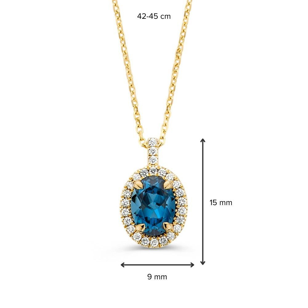 Collier geelgoud london blue topaas + briljant