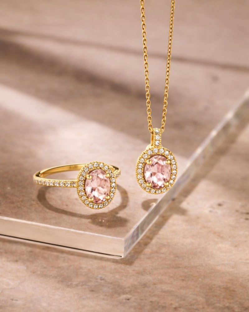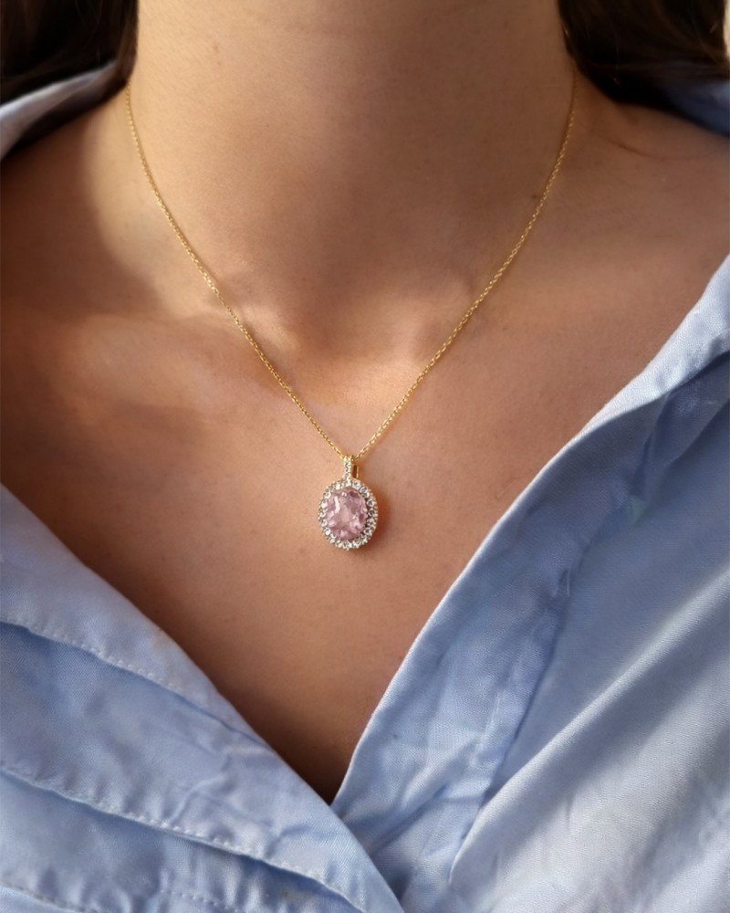 Collier geelgoud morganiet + briljant