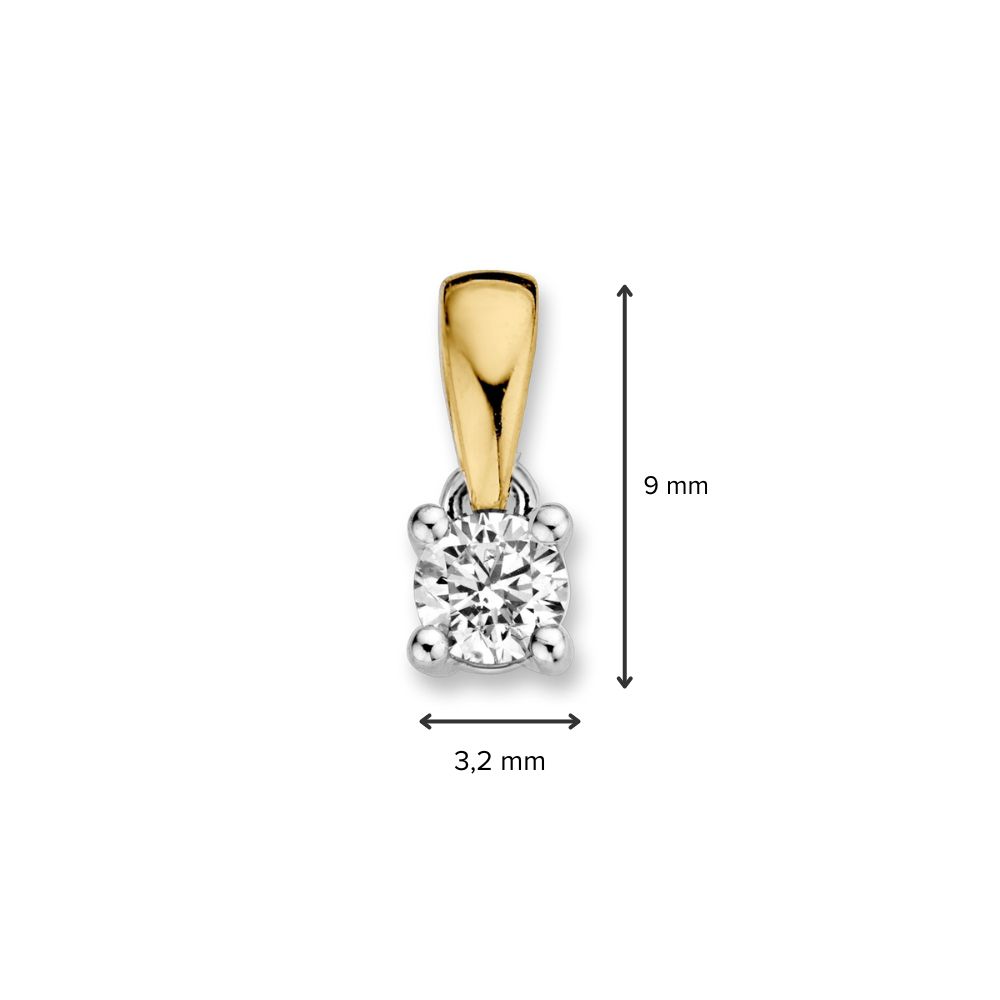 Bicolor gouden solitair hanger met 0,15 crt. briljant in vierpootszetting.