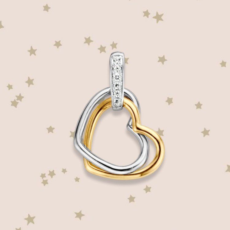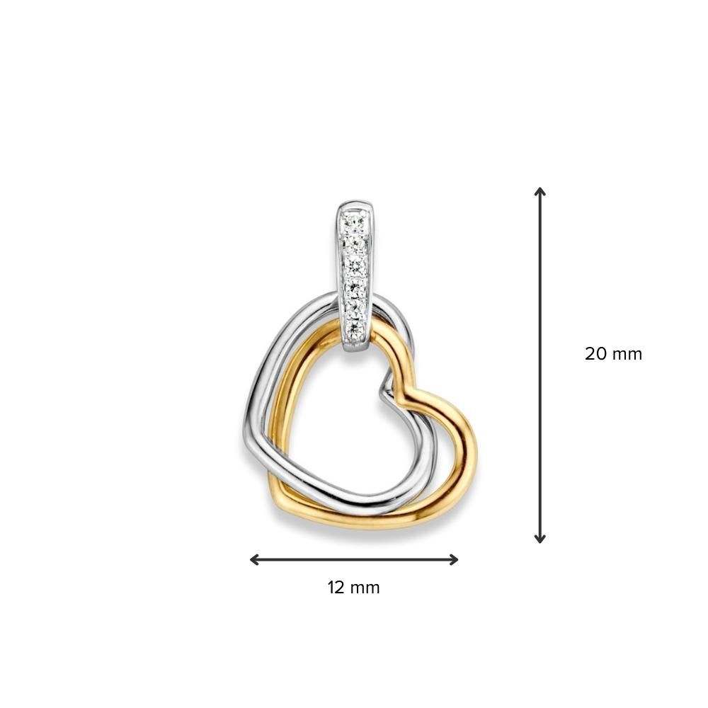Bicolor gouden hanger in hartvorm, gezet met zirkonia.