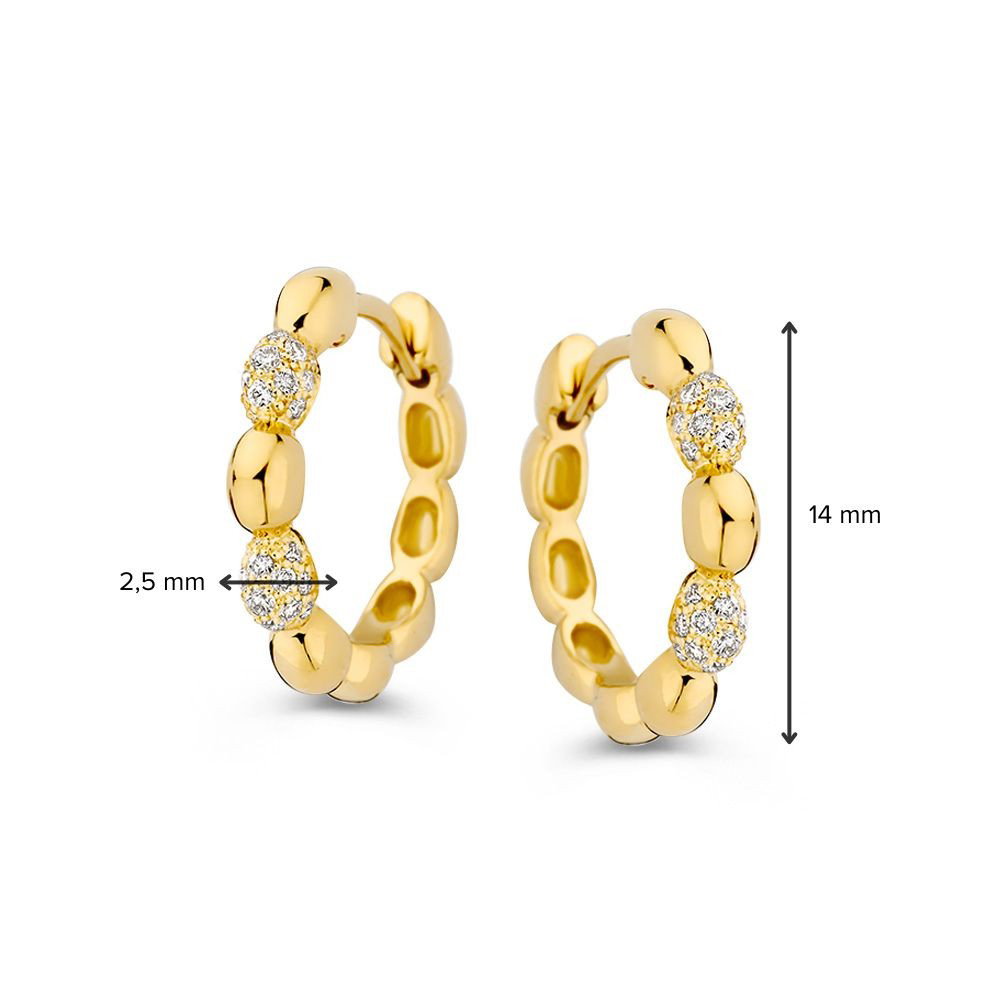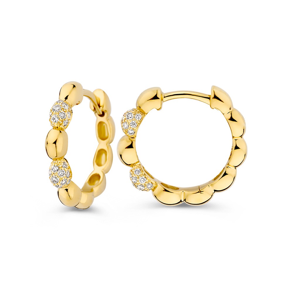 Deze elegante oorringen van 14 karaat geelgoud zijn uitgevoerd met ronde bolletjes en schitterende briljantgeslepen diamanten (0,16 crt) voor een subtiele, sprankelende look.