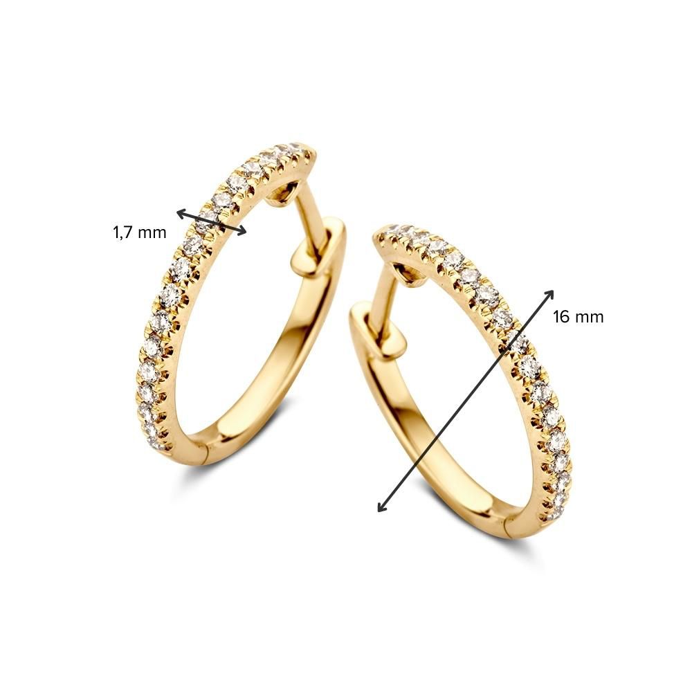 Stijlvolle geelgouden oorringen gezet met diamant.