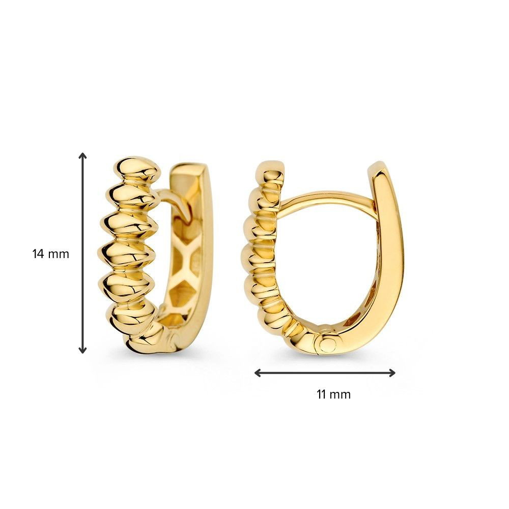 Geelgouden oorringen met speelse ribbelbewerking aan de voorzijde.