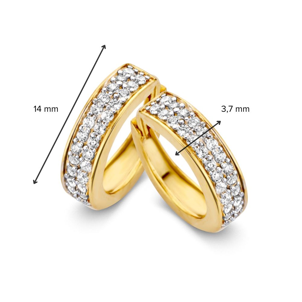 Geelgouden oorringen met zirkonia’s in pavézetting.