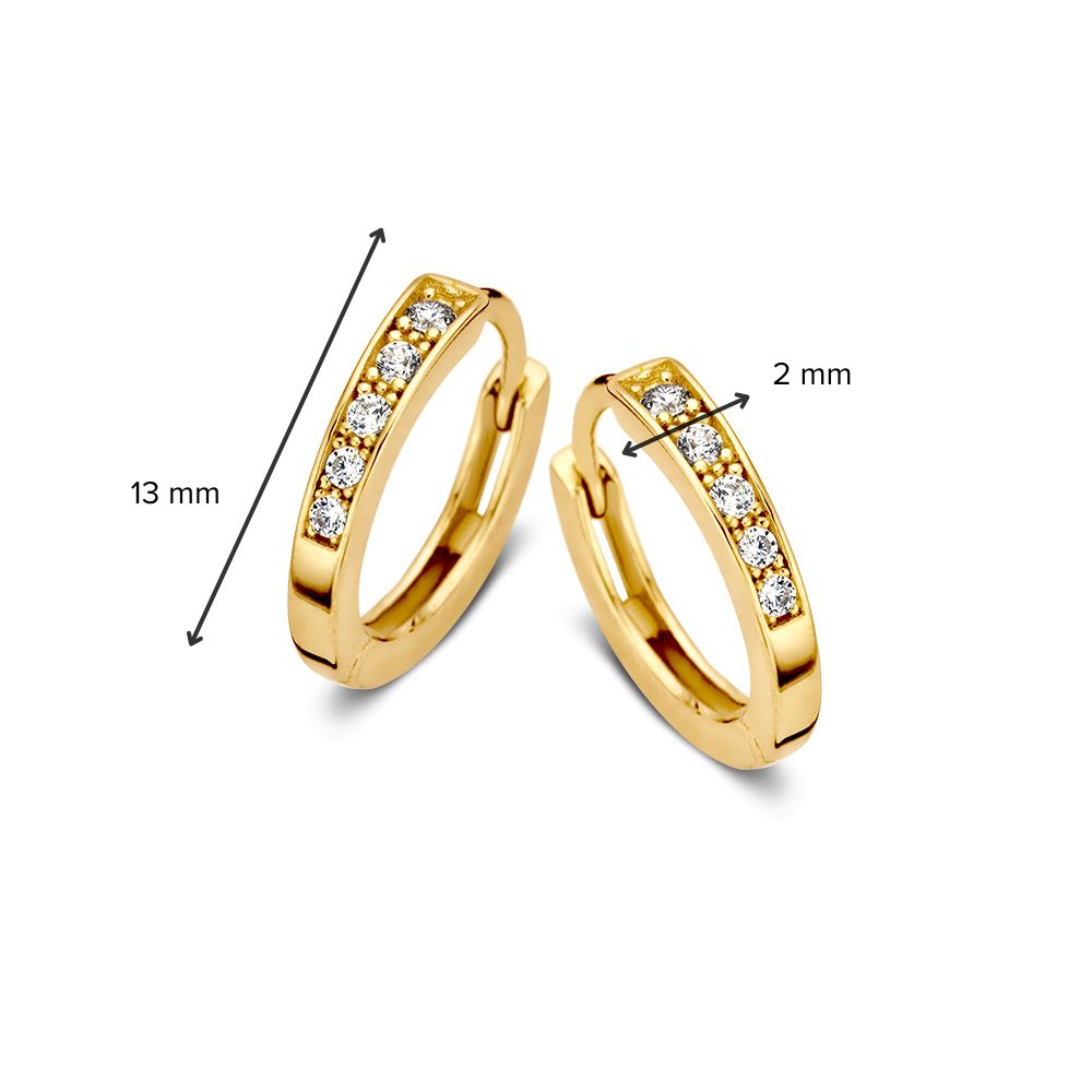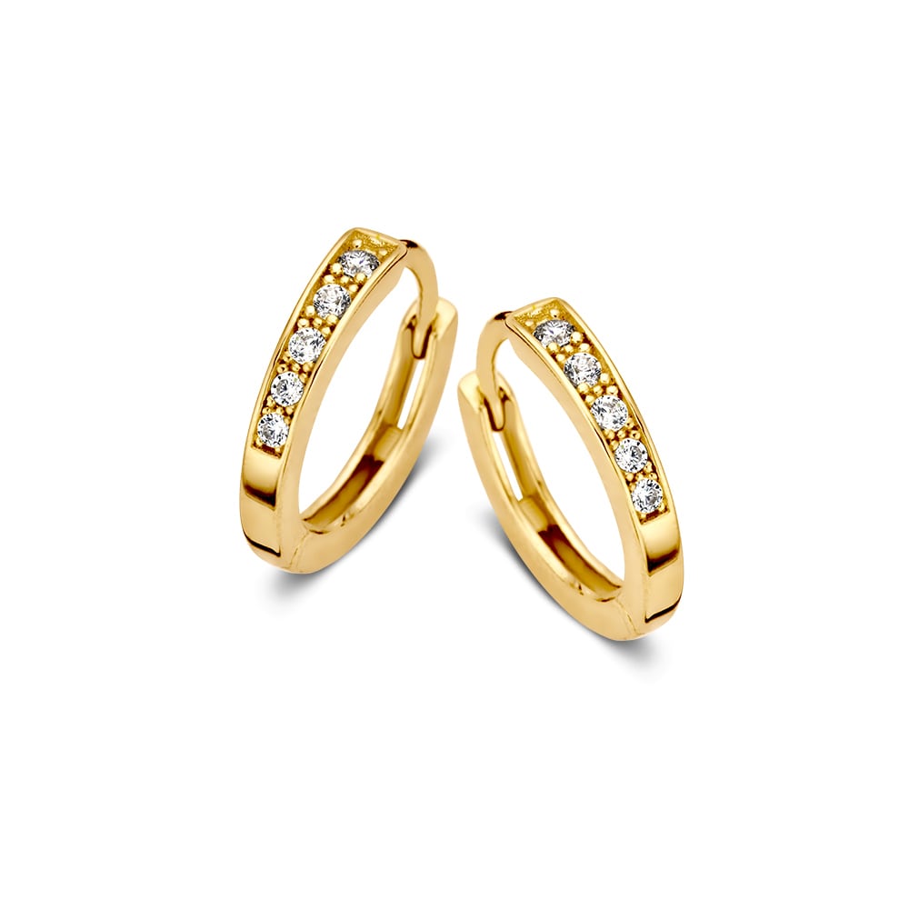 Geelgouden oorringen met zirkonia’s.