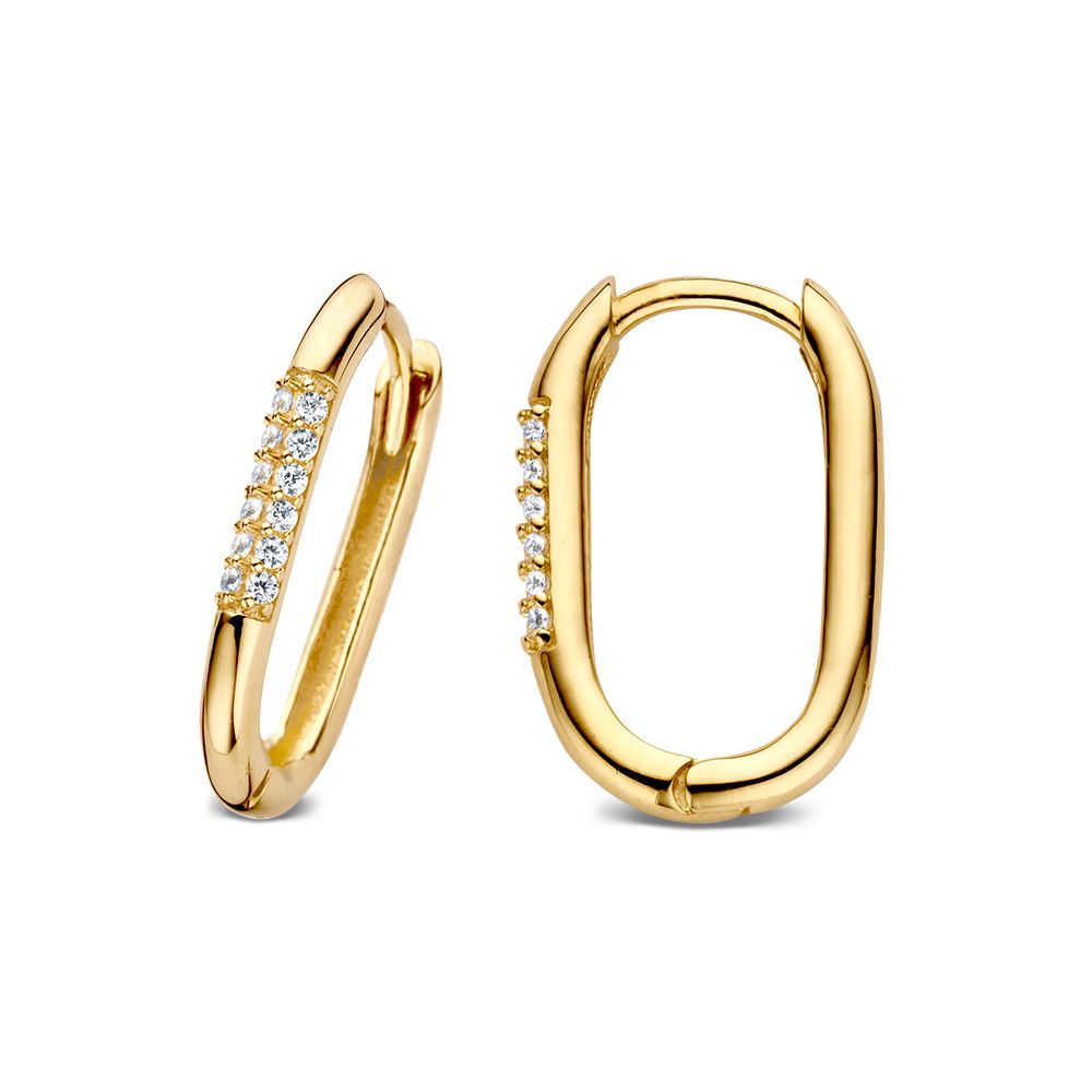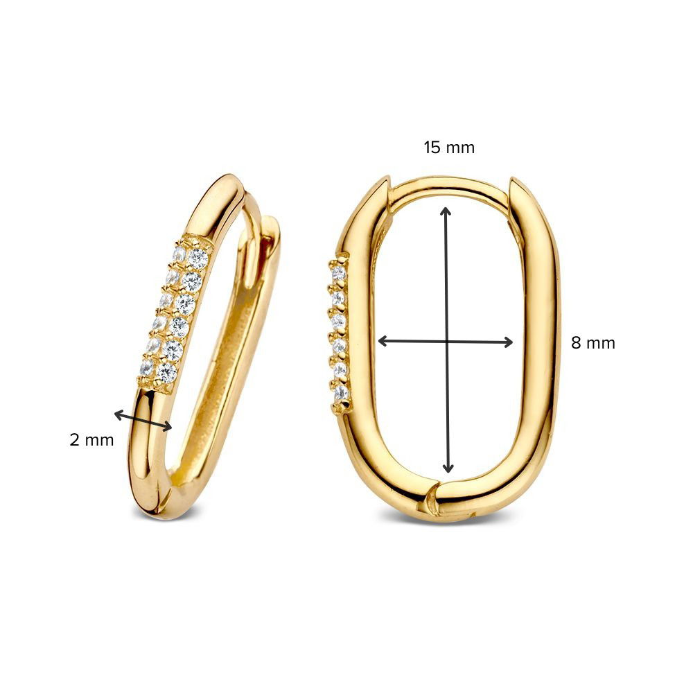 Geelgouden oorringen met ovale vorm en fijne zirkonia’s.