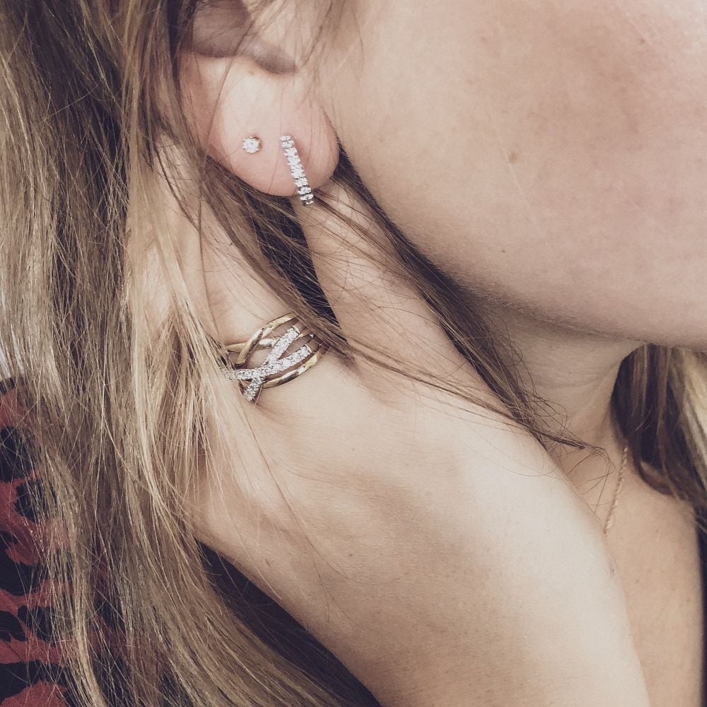 Geelgouden solitair oorstekers met een zespoot zetting.