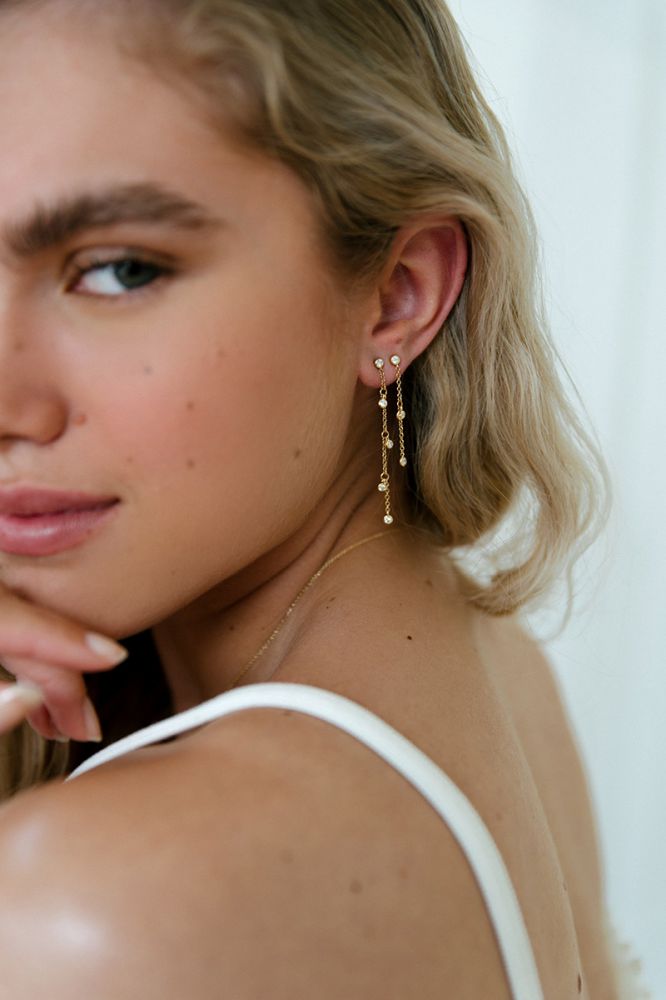 Schitterende hangende oorbellen met dansende diamanten.