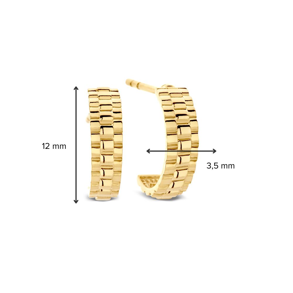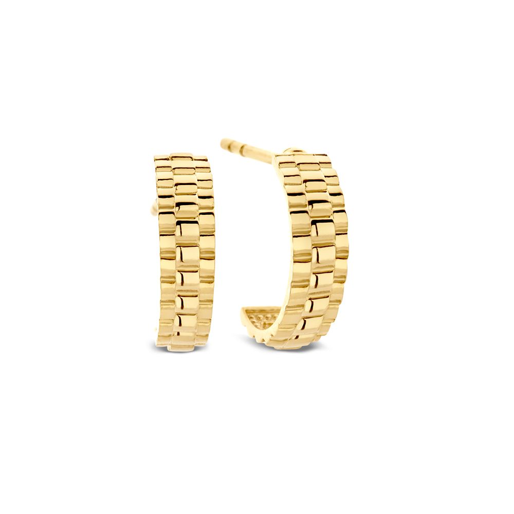 Geelgouden oorstekers met ‘Rolexschakel’ die om de oorlel heenvallen.