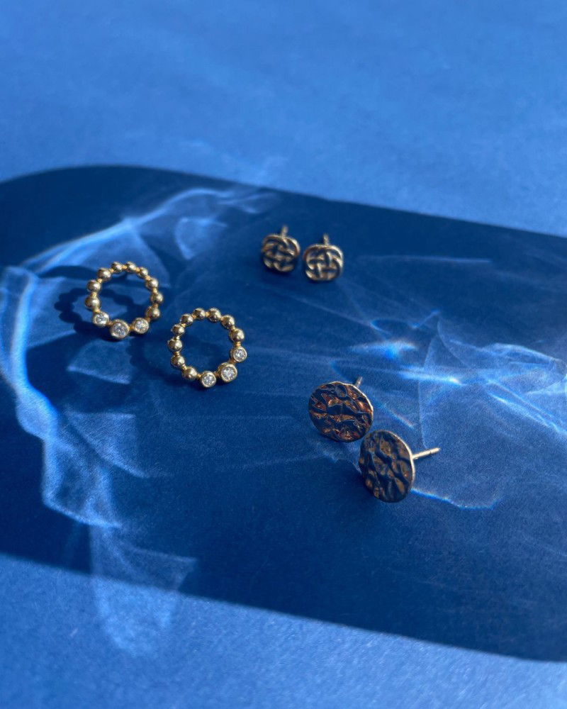Geelgouden oorstekers met verweven patroon.