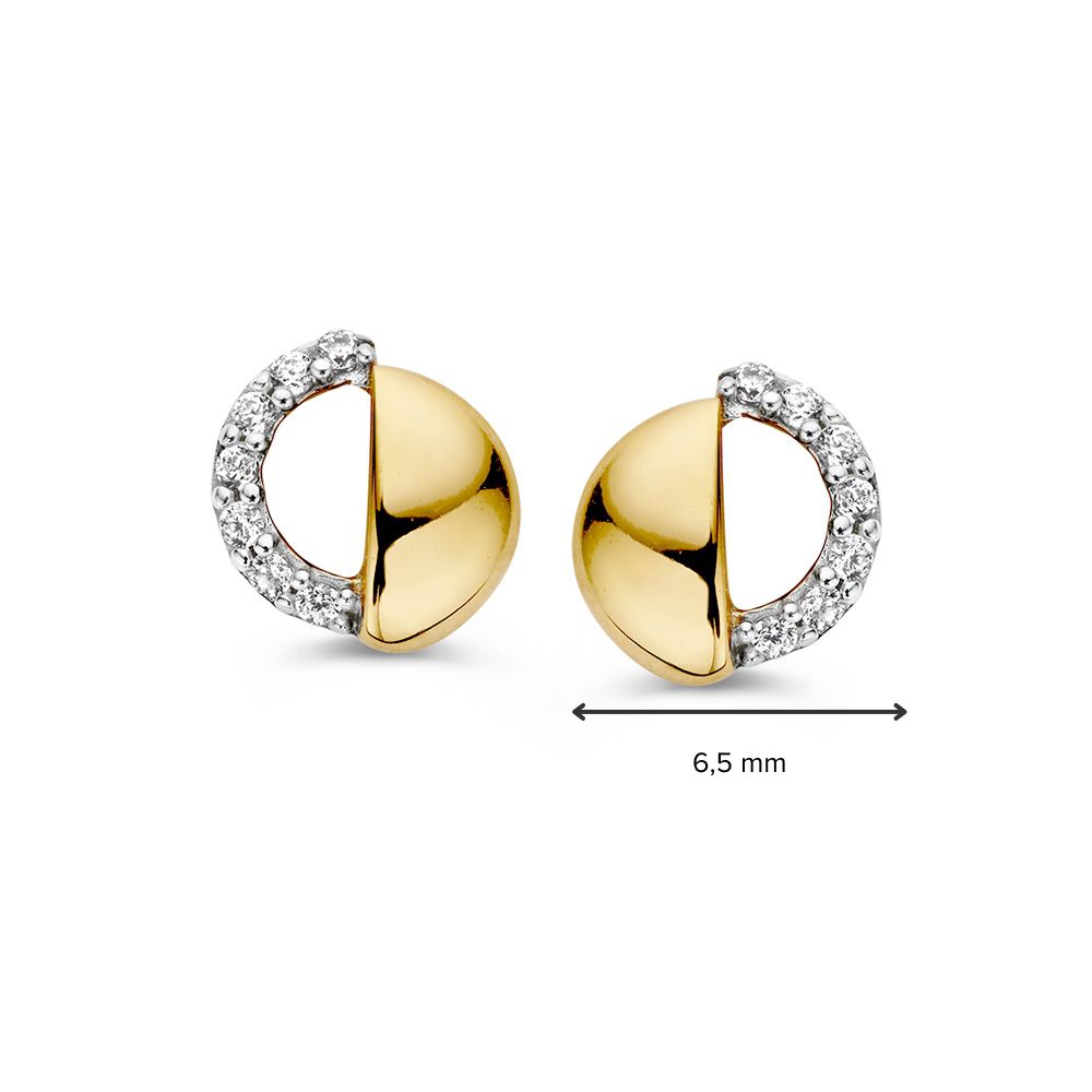 Bicolor wit- en geelgouden oorknoppen met zirkonia’s.