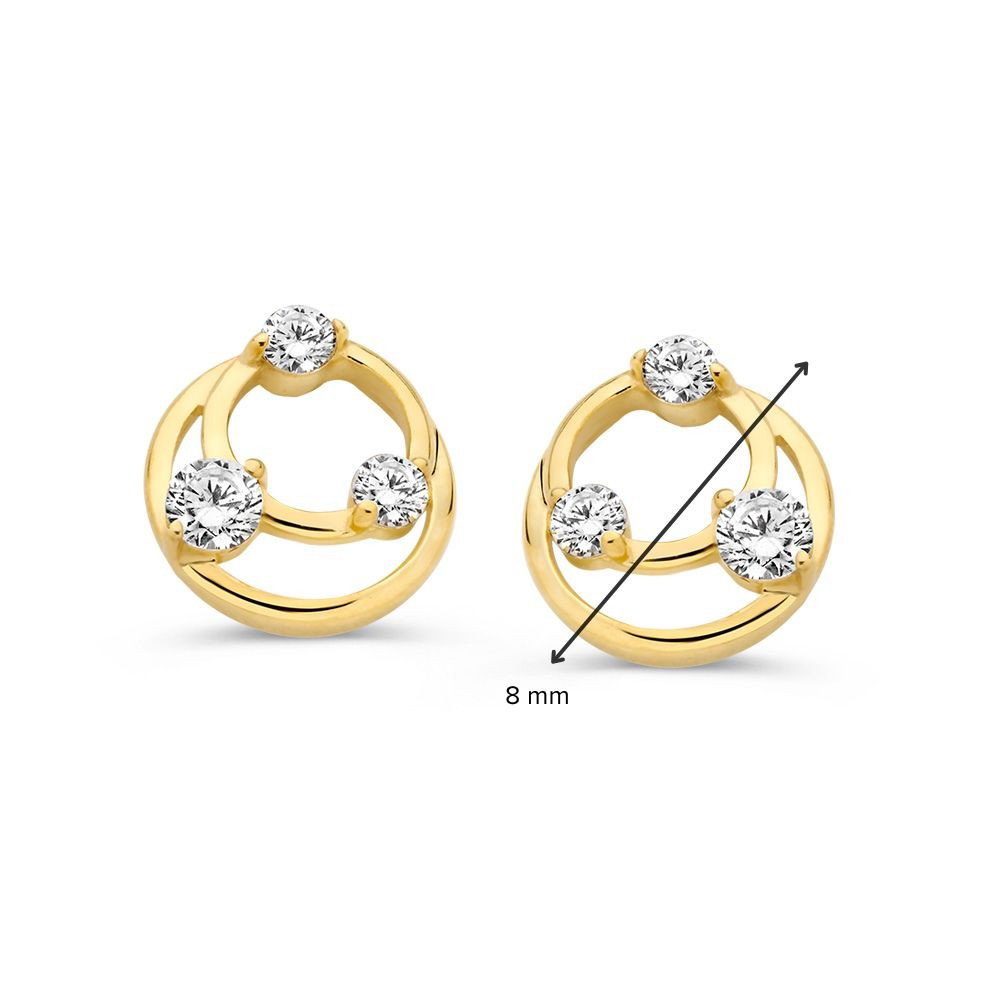 Deze 14 karaat geelgouden oorstekers met zirkonia vallen op door hun elegante, ronde vormen.