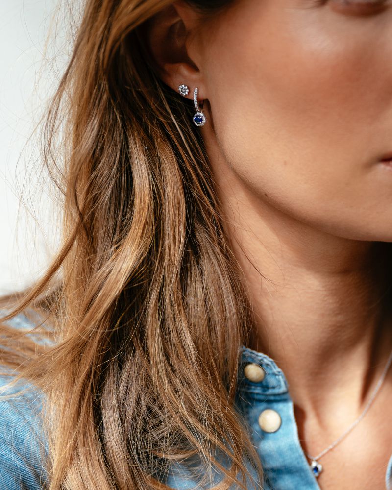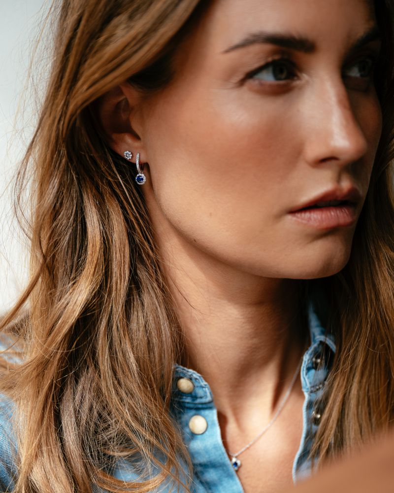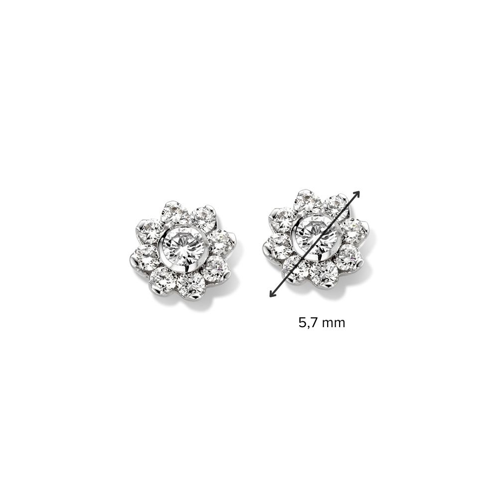 Witgouden oorstekers met diamant in klassieke entourage zetting.