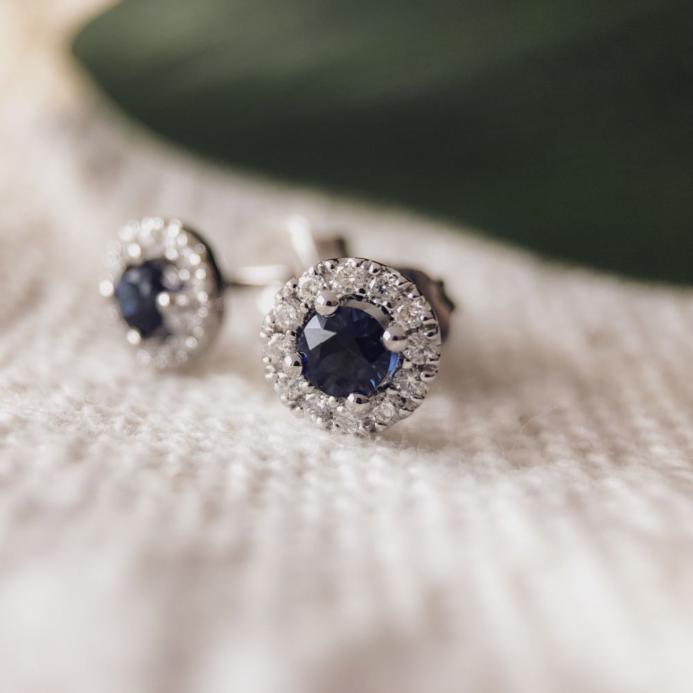 Oorstekers witgoud briljant+saffier