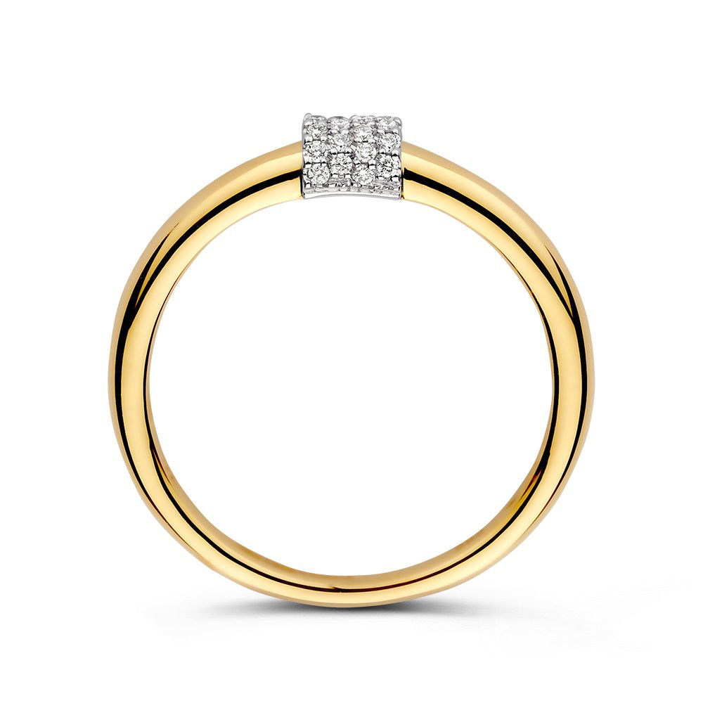Tijdloze, bicolor gouden ring met een diamanten blokje als stralende eyecatcher. De diamanten in de ring zijn op pavéwijze gezet, waardoor ze voor een fonkelende look zorgen.
