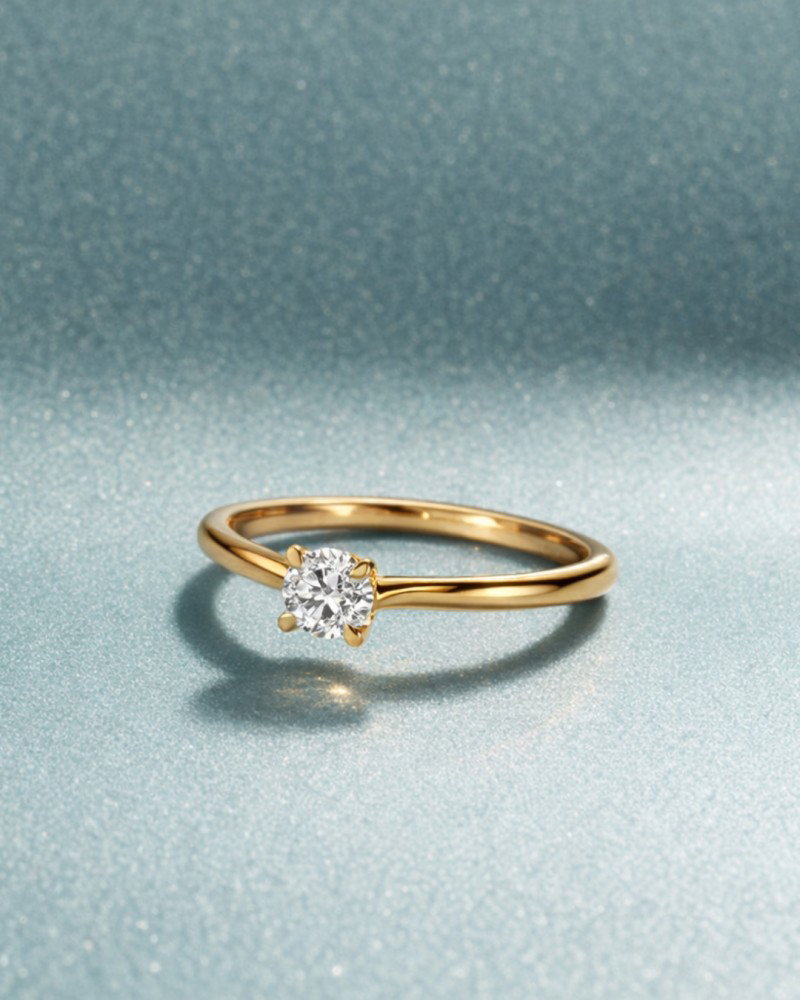 Geelgouden solitair in strakke vierpootzetting.