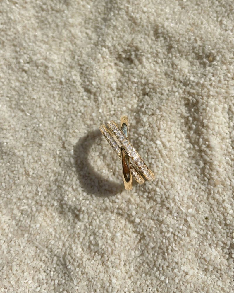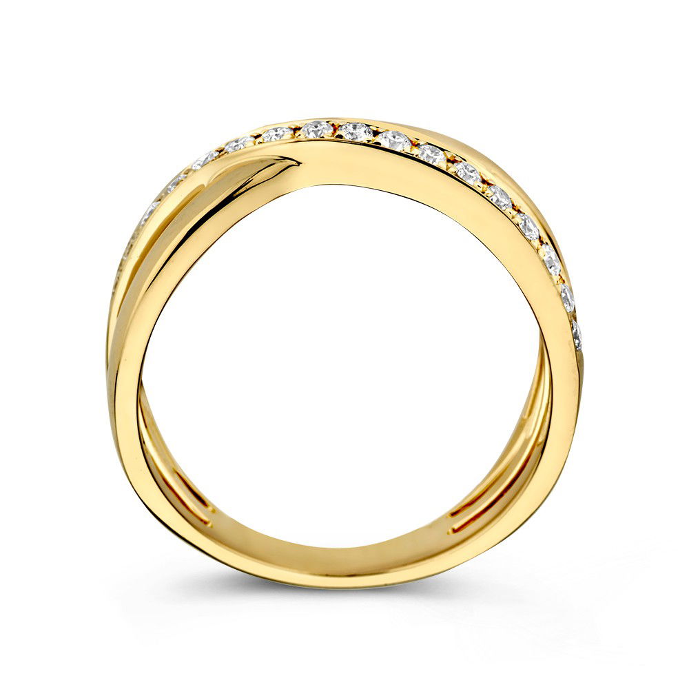 Prachtige geelgouden crossover ring met diamant.