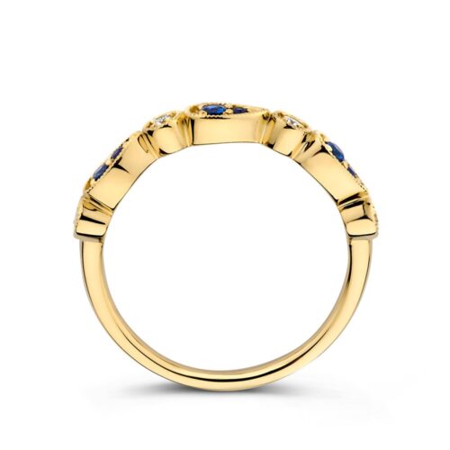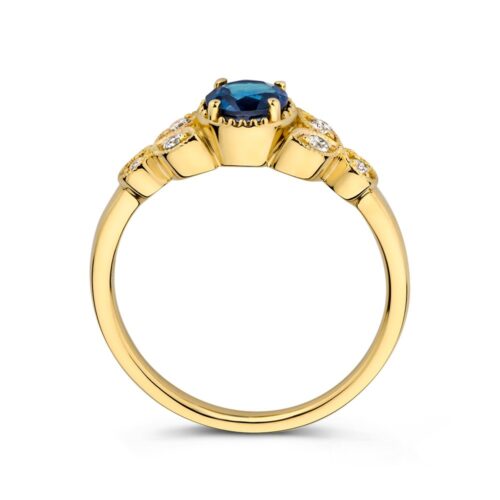 Ring geelgoud briljant + saffier