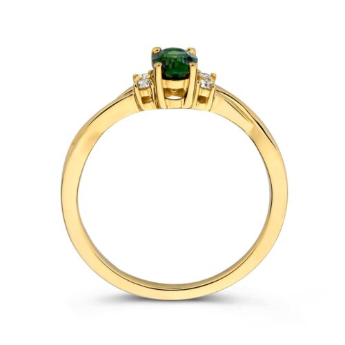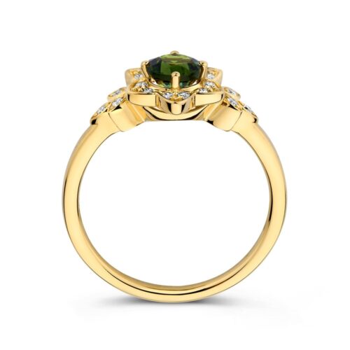 Ring geelgoud groene toermalijn + briljant