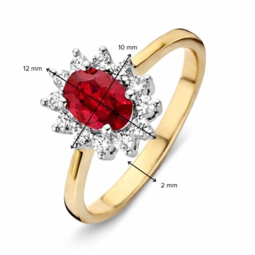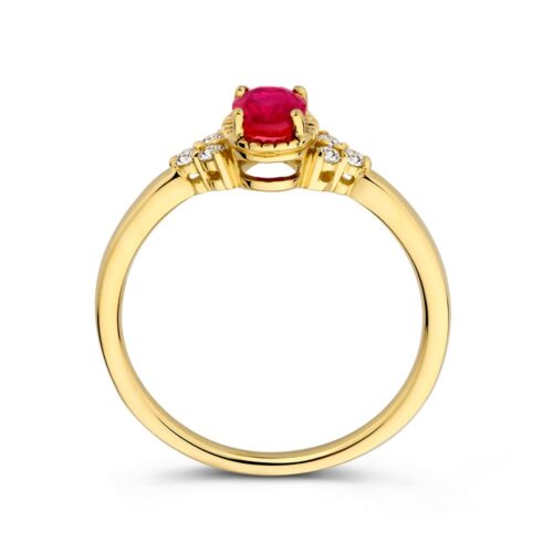 Ring geelgoud robijn + briljant