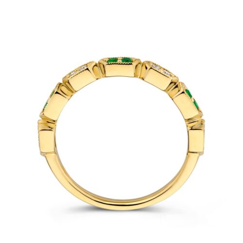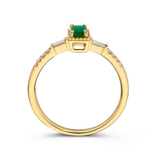 Ring geelgoud smaragd + briljant